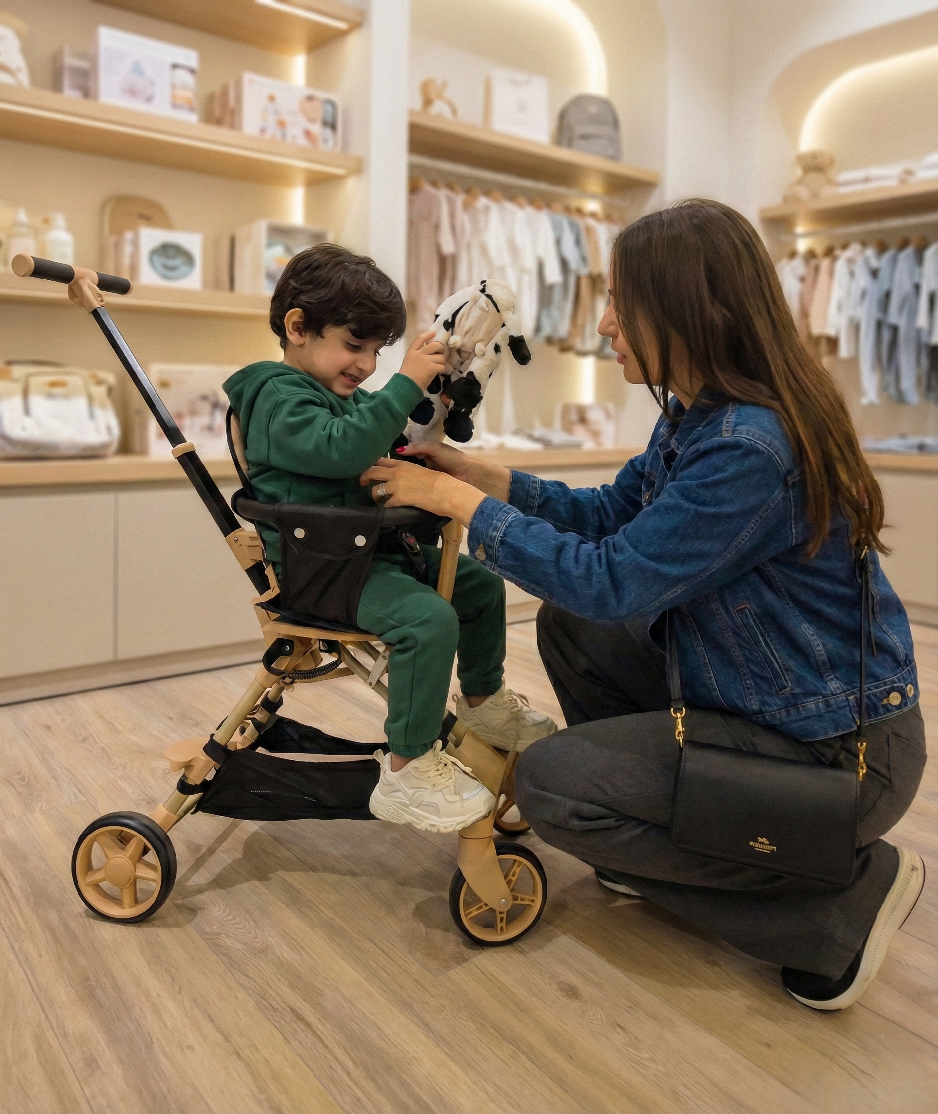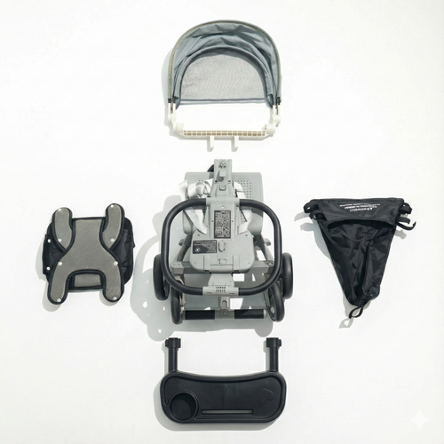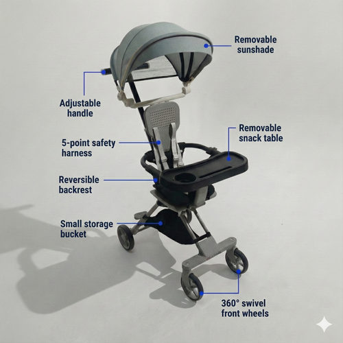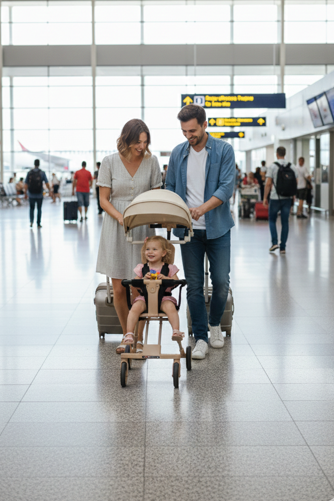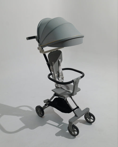 This innovative design effortlessly transitions from a chic luggage piece to a child stroller, ensuring mobility and sophistication.